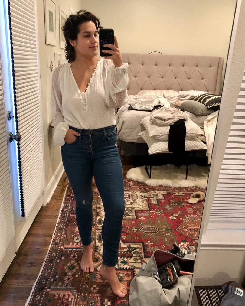 Truly. THE BEST BRA. EVER. 100% true to size (so know your size). It’s perfect coverage, very comfortable, and looks great under everything. Modeled here in the best henley ever.