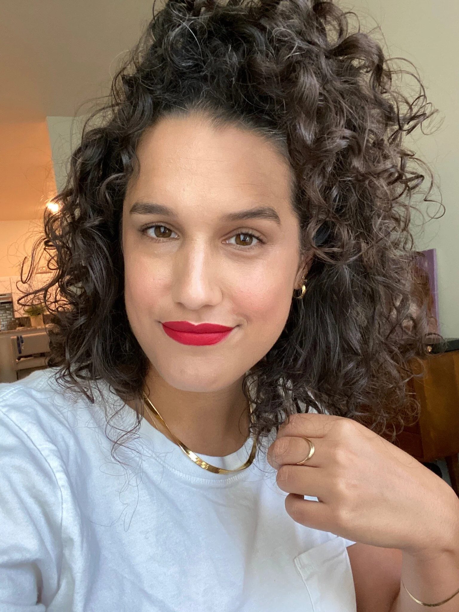 I know the majority of my audience doesn’t have curly hair. But it’s important to me that you witness the trials and tribulations we coiled up girls face day in and day out. I’ve been on the hunt for the perfect styling product since I was 14. No shit. I find one I love and that works for a while, then it’s either discontinued OR my hormones change my curls a bit, so I’m back to square one. Long story short: This is the product I’m swearing by right now. I love the smell, the hold, and the weight of it. I work it into my curls while they’re soaking wet, let it hair dry, then scrunch the crunch out.