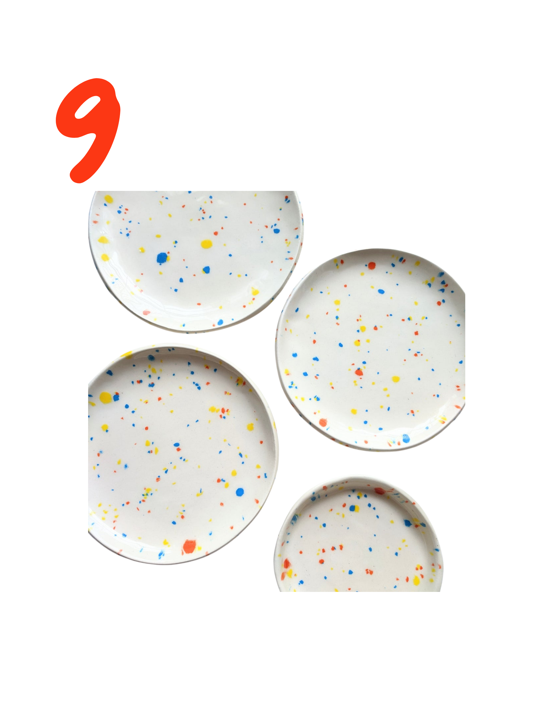 So my confetti plates are from Felt+Fat, but they were a limited edition during the holidays. However, because Iβm such a good friend, I found super similar ones via Etsy and yβall bought the shit out of them! They make eating your snacks and food even more fun.
