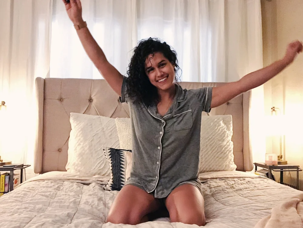 Yeah, I know I look tired as ball because I was. But y'all, like. I can't stress enough how insanely soft and cozy these are. I need to get more colors because I've already worn my grey ones too many times. I love this set so much. I also took a medium and the shorts are a little roomy, but I'd rather have roomier bottoms to sleep in than small ones that go up my ass and completely ruin the entire purpose of having comfy sleep clothes.