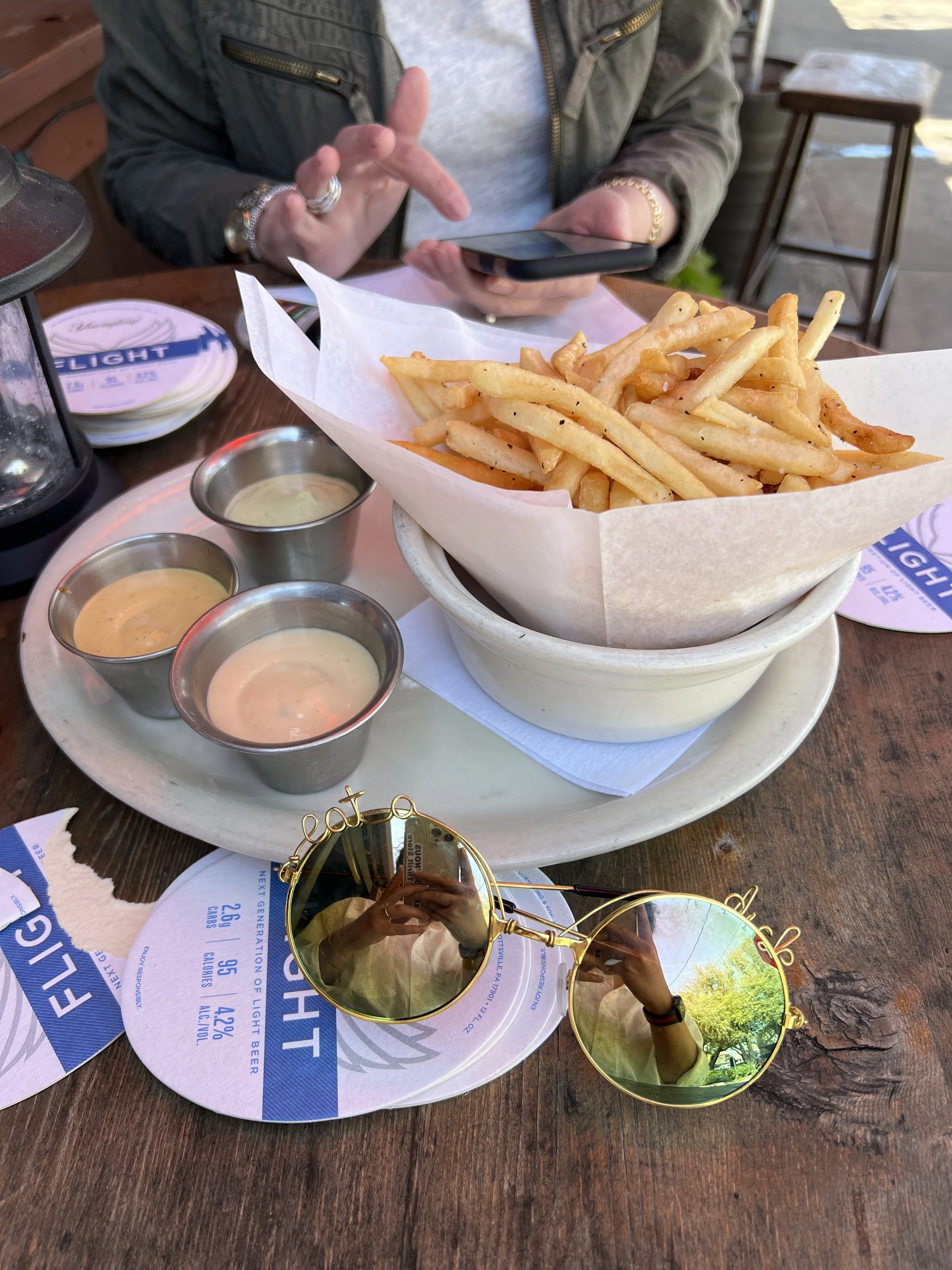 The skinny frites with three dipping sauces is a non-negotiable